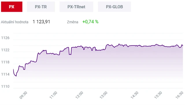 Pražská burza začala nový rok růstem na nejsilnější hodnotu za zhruba rok a tři čtvrtě. Index PX ve čtvrtek stoupl o 0,74 % na 1 123,91 bodu. V poklidném obchodování posílily akcie energetické společnosti ČEZ, Komerční banky i Erste Group Bank. Zobchodovaný objem čítal necelých 176 milionů korun.