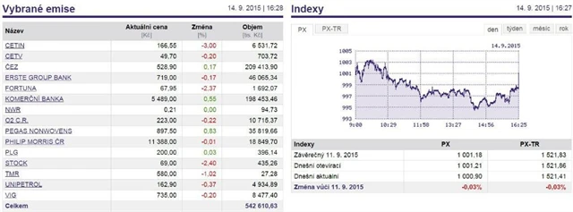 Index PX v pondělí odepsal 0,03 % na 1 000,90 bodu.