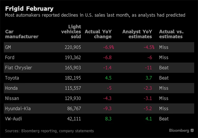 Prodeje aut ve Spojených státech v únoru dosáhly v celoročním přepočtu 17,08 milionu jednotek. Vyplývá to z údajů společnosti Autodata. V lednu dosáhly anualizované prodeje 17,12 milionu jednotek, za únor analytici čekali výsledek 17,2 milionu.