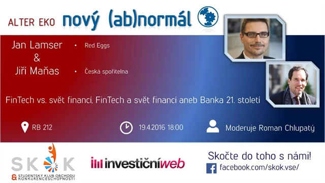 O tom, jak bude svět financí 21. století vypadat a co to bude znamenat pro stávají finanční instituce i pro koncové uživatele, následně od 18.00 do 19.30 v rámci cyklu seminářů Nový (ab)normál (učebna RB 212) debatovali: