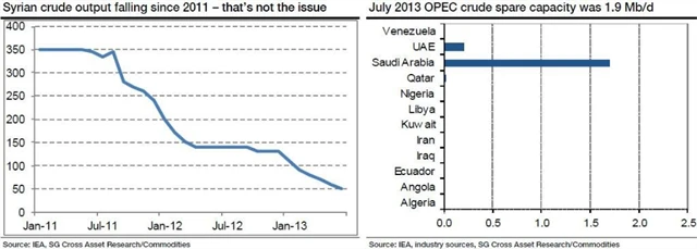 Vysoké ceny ropy by měly být podle Société Générale dočasným fenoménem. Růst světové ekonomiky a poptávka po ropě jsou nízké, Saúdská Arábie je schopna na trh dodávat více ropy a řada zemí disponuje dostatečnými ropnými rezervami na to, aby střednědobý výpadek dodávek z Blízkého východu mohl být vyrovnán.