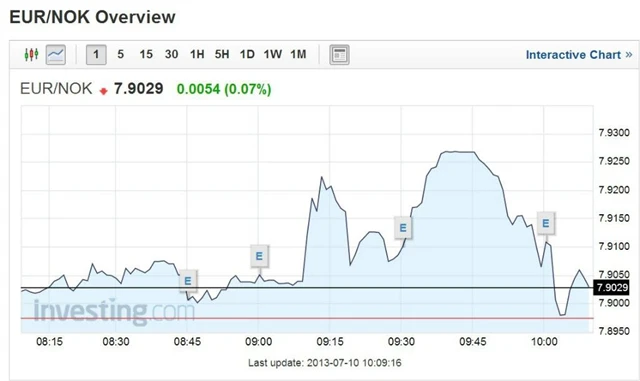 Před zveřejněním údajů o inflaci norská koruna posílila z 7,92 EUR/NOK na 7,89 EUR/NOK, poté však začala znovu oslabovat na 7,9071 EUR/NOK.