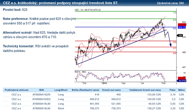 Technická analýza: ČEZ, Erste, WTI, zlato (20. 10. 2014)