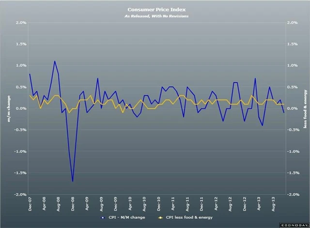 Cenová hladina se proti předešlému měsíci snížila o 0,1 % po zářijovém nárůstu o 0,2 %. Ekonomové v průměru odhadovali, že ceny zůstanou beze změny a inflace klesne na jedno procento.