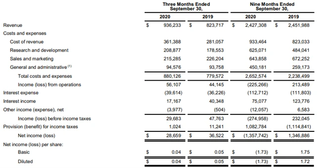 Twitter - hospodářské výsledky za 3Q2020 a 9M2020