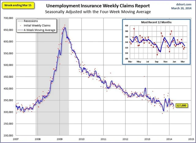 Týdenní počet nových žádostí o podporu v nezaměstnanosti ve Spojených státech v týdnu do 15. března vzrostl o 5 tisíc na 320 tisíc, čekal se větší růst na 322 tisíc. Předchozí data byla revidována na 315 tisíc z 324 tisíc. Počet pokračujících žádostí v týdnu do 8. března vzrostl na 2,889 milionu, čekalo se 2,88 milionu po předchozích 2,848 milionu (revidováno z 2,855 milionu). Čtyřtýdenní průměr klesl na 327 tisíc z 330 500.