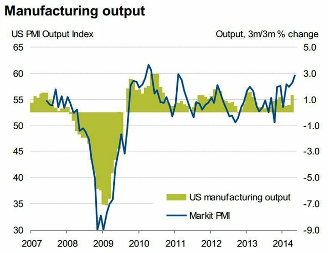 "Expanze zpracovatelského sektoru také předznamenává, že bychom mohli svědky velmi solidních čísel o vývoji amerického hrubého domácího produktu v druhém čtvrtletí letošního roku," dodal Williamson. "Podle vyjádření většiny firem navíc nelze současný vývoj považovat jenom za dohánění toho, co na začátku roku sebralo špatné počasí. Podniky se shodují, že poptávka roste spolu se zvyšující se důvěrou jejich zákazníků v americké hospodářství."