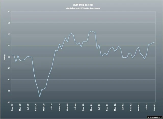 Index nákupních manažerů podle institutu ISM v říjnu vyskočil na 56,4 bodu ze zářijových 56,2 bodu, což je nejvíce od dubna 2011. Očekával se mírný pokles na 55 bodů.