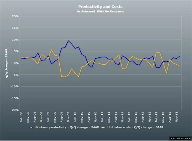Produktivita v nezemědělském sektoru ve Spojených státech ve třetím čtvrtletí vzrostla mírně více, než se předvídalo. Čekal se růst o 2,9 %, vzrostla o 3 % (revidováno z +1,9 %). Náklady na pracovní sílu spadly o 1,4 % v souladu s očekáváním.