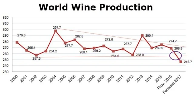 Důvodem je slabá produkce vína v klíčových evropských zemích, tedy v Itálii, Francii a Španělsku. Vinařům letos nepřálo počasí, negativně produkci ovlivnila především velká sucha. I v Evropě se ovšem našly výjimky, meziročně vyšší produkci hlásí Rumunsko, Maďarsko, Rakousko a Portugalsko, za oceánem zažili dobrý rok vinaři v Jižní Americe.