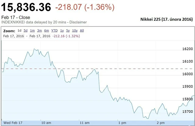 Japonský Nikkei 225 odepsal 1,36 % na 15 836,36 bodu poté, co během dne i o procento posiloval.