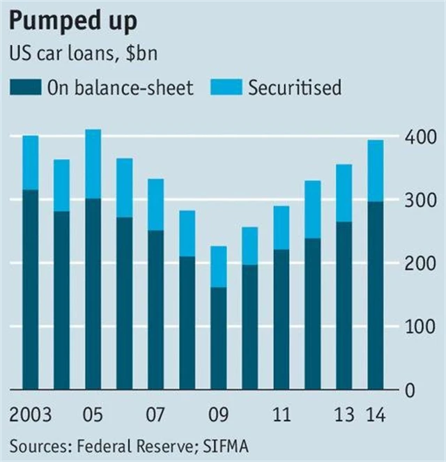 Půjčky na nákupy aut jsou relativně málo rizikové (v grafu pro ilustraci ty v USA) – když klient nesplácí, zkrátka se mu vezme vůz. Výrobci aut ale potřebují tyto půjčky financovat. A například Volkswagen financoval zhruba čtvrtinu z 10 milionů aut prodaných loni právě penězi, které získal z prodaných dluhopisů. Pokud bude pokračovat tlak na automobilky, výrobci aut budou muset platit více za své půjčky, což by postupně (ze předpokladu, že to výrazně nepromítnou do cen pro zákazníky, ale dravá konkurence je od tohoto nejspíše celkem spolehlivě odradí) vedlo k tomu, že budou nuceni sáhnout na své hotovostní rezervy.