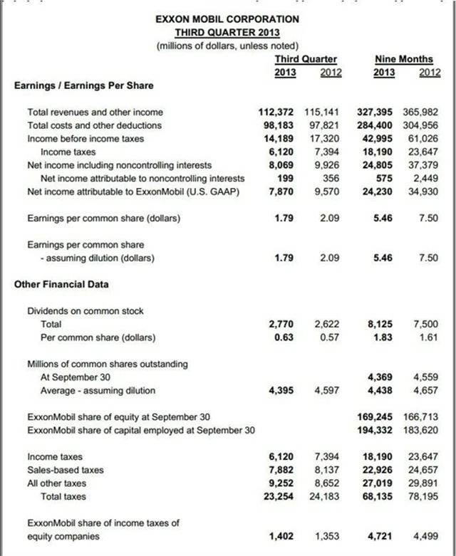 Výsledky však překonaly odhady analytiků. Zisk na akcii činil 1,79 dolaru, analytici čekali v průměru zisk 1,77 dolaru. Celkové příjmy se snížily o dvě procenta na 112,4 miliardy USD. Těžba ropy a zemního plynu meziročně stoupla o 1,5 %, hlavně díky novým projektům.