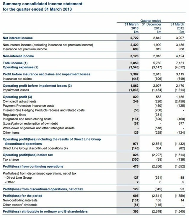 Výsledky RBS za 1Q2013: Čistý zisk 393 milionů liber (odhad: 317 milionů liber)