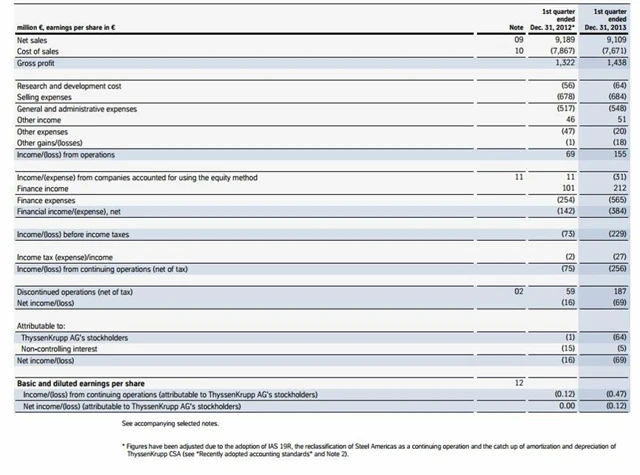 Výsledky ThyssenKrupp ve 4Q2013: Očištěný EBIT 247 milionů EUR (odhad: 218,7 milionu EUR)