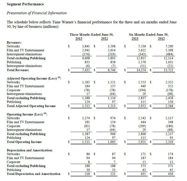 Nové filmy pomohly k růstu příjmů v divizi filmu a televizní zábavy o 13 %. Time Warner vlastní mimo jiné zpravodajský kanál CNN, kabelovou televizi HBO nebo filmová studia Warner Bros Entertainment.