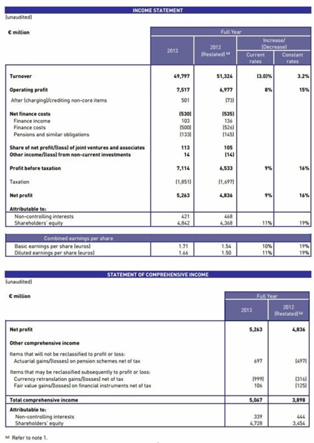 Základní tržby firmě loni vzrostly o 4,3 %. To je o trochu víc než čekali analytici, kteří podle agentury Reuters počítali se zvýšením o 4,2 %. Na rozvíjejících se trzích se základní tržby zvýšily o 8,7 %. V roce 2012 ale jejich růst překračoval 11 %. Firma ve své výsledkové zprávě poznamenala, že růst na těchto trzích zpomaloval kvůli ekonomické nejistotě a znehodnocování měn, které se podepsaly na poptávce spotřebitelů.