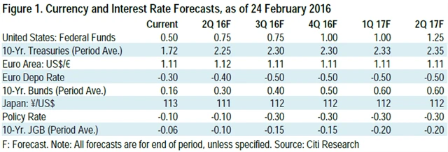 Citigroup snížila odhad globálního růstu v letošním roce o 0,2 procentního bodu na 2,5 %. To by znamenalo stejné tempo jako loni, ale výrazně méně, než banka čekala v polovině roku 2015 (+3,4 %). "Pokud vezmeme v úvahu možné špatné měření čínského HDP, pak se růst světové ekonomiky může pohybovat těsně nad 2 % za rok. Naše predikce je pesimističtější než průměr trhu v řadě vyspělých i rozvíjejících se ekonomik, u druhých jmenovaných navíc vnímáme riziko dalšího zhoršování výhledu. Tím se dostáváme velice blízko růstu pod 2 % v roce 2016, což lze označit jako 'růstovou recesi'," píše banka v únorové ekonomické prognóze.