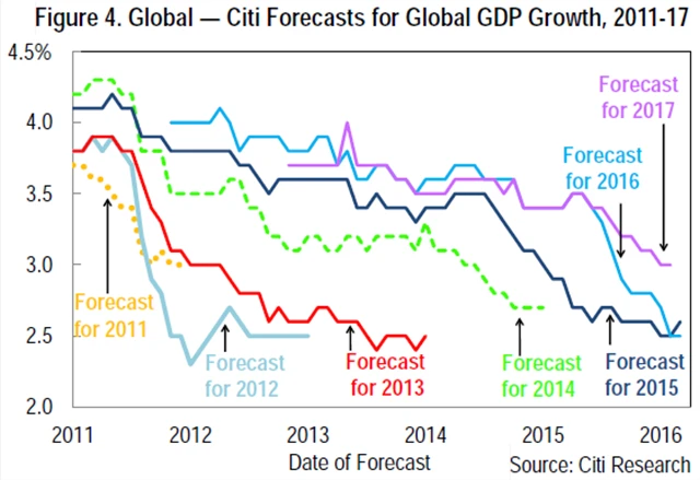 Míru růstu globální ekonomiky v roce 2016 nadále čekáme okolo 2,5 %, podobně jako loni (podle posledních odhadů 2,6 %). Znamenalo by to další, již pátý rok globální expanze hluboko pod dlouhodobou normou zhruba 3 % ročně. Pokud navíc vezmeme v potaz možné nesprávné měření čínského HDP, skutečný růst globální ekonomiky v roce 2016 se může pohybovat okolo 2-2,25 % ročně.