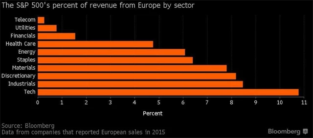 EU je sice jedním z největších obchodních prostorů, ale americké firmy nejsou na evropských spotřebitelích až tak závislé. I u té nejvíce závislé skupiny firem, těch z oboru technologií, představují příjmy z Evropy pouze 11 % celkového obratu. Podle JPMorgan příjmy společností z indexu S&P 500 plynoucí z Velké Británie tvoří asi 1 % celkových příjmů, z EU je to asi 5–6 %.