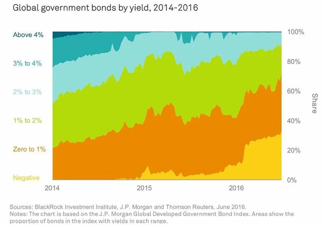 Investoři si musejí zvykat na prostředí nulových či záporných sazeb a nízkou návratnost investic. V době, kdy téměř tři čtvrtiny stáních dluhopisů vynášejí méně než 1 %, se snižují odhady budoucích zisků. Dosažení alespoň nějakého výnosu je velkou výzvou. Je podmíněno vyšším rizikem, a to buď pomocí páky, nebo volbou rizikovějšího aktiva, což dále tlačí ceny rizikových nástrojů výše na úkor konzervativních investic.