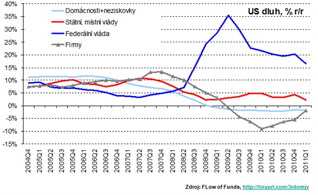 V USA došlo k masivnímu oddlužení spotřebitelského sektoru. V podstatě jedinou složkou, která stojí stranou současného trendu deleveragingu – a zatím správně - je vláda.