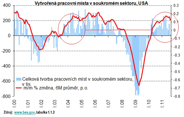 Stát se však od konce roku 2010 stal negativním faktorem pro hospodářský růst. Nejde sice zatím o žádný masivní deleveraging, přesto stát omezuje přímé výdaje, a to se negativně odráží na HDP. Není se pak čemu divit, že v situaci, kdy jsou slabí spotřebitelé, je v americké ekonomice, která je odkázaná na poptávku domácností, tvorba pracovních míst nedostatečná.