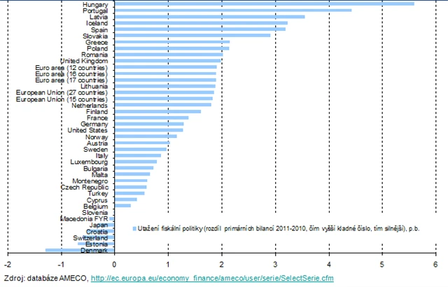 V EMU proces fiskální restrikce na úrovni vlád již probíhá, zatím ale hlavně v zemích, které nejsou systémově důležité (Řecko, Portugalsko, Španělsko). Průměrné utahování fiskální politiky v eurozóně je na úrovni kolem 1,5 až 2 %.