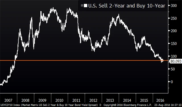 Dluhopisový trh oceňuje riziko spojené s délkou investice do dluhu jako nejnižší od roku 2007.