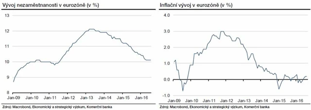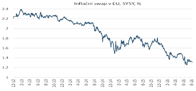 Aktuálně míra nezaměstnanosti v eurozóně již čtyři měsíce stagnuje na 10,1 %. Oproti více než 12 % zaznamenaným v polovině roku 2013 se jedná o významné zlepšení, které je na ochotě evropských domácností utrácet patrné. Nicméně míra nezaměstnanosti přesahující 10 % je příliš vysoká na to, aby trh práce generoval významnější inflační tlaky. Namísto očekávaného zrychlení inflace v eurozóně v srpnu stagnovala na červencových 0,2 %.