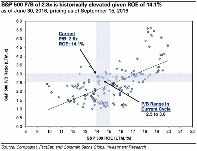 Kostin navíc upozorňuje na jednu zřejmou anomálii. "Z historické zkušenosti víme, že pokles rentability vlastního kapitálu (ROE) investoři 'odměňují' nižšími valuacemi. Během posledních osmi kvartálů se rentabilita vlastního kapitálu amerických podniků snížila o 200 bazických bodů na 14,1 %, valuace akcií měřená jejich tržní cenou v poměru k účetní hodnotě (P/B) se ovšem zvýšila na 2,8. Nachází se tak dokonce nad 40letým průměrem 2,5. Případná normalizace tohoto vztahu bude logicky znamenat pokles cen akcií," uzavírá Kostin.