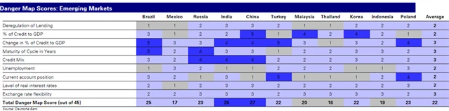 V rámci rozvíjejících se zemí dopadly nejlépe Mexiko, Thajsko a Indonésie, naopak nejvíce nebezpečí číhá na investory v Číně a Indii.
