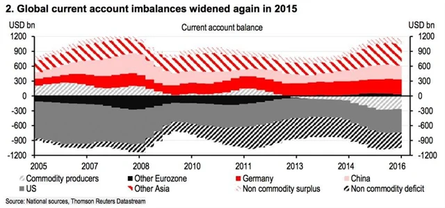 Henryová tvrdí, že první jiskru zažehla zvyšující se nerovnováha mezi bilancemi běžných účtů zemí z různých světových regionů. "Drtivou krizi rozpoutalo splasknutí bublin, které se vytvořily vlivem nerovnoměrného rozložení kapitálu ve světě," říká ekonomka. O to více znepokojující je podle ní fakt, že v loňském roce svět pozoroval podobný trend. Nerovnováha mezi přebytky a schodky běžných účtů v dolarovém vyjádření je opět takřka rekordní.