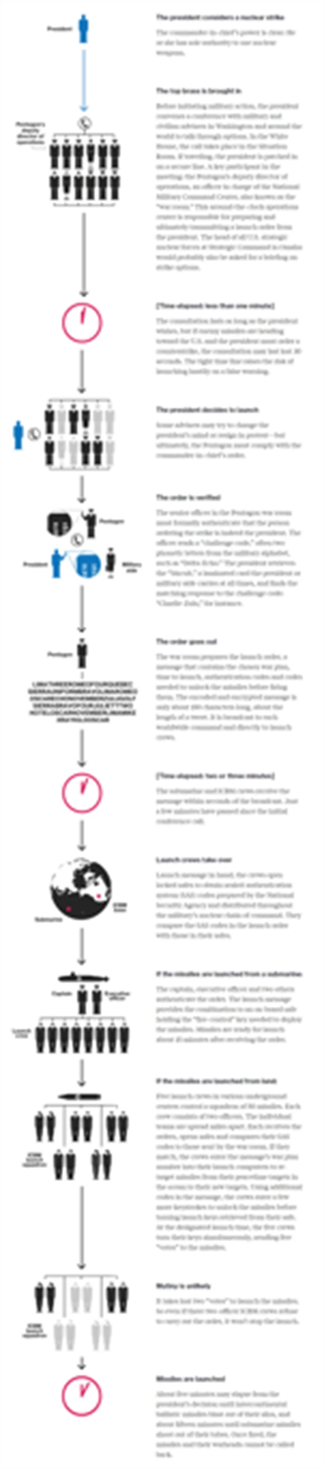 Jaderný útok sice nelze provést stisknutím jediného tlačítka, pokud k němu ale prezident dá rozkaz, je rozhodnuto. Kroky, které je k odpálení raket s jadernými hlavicemi potřeba uskutečnit, jsou pouze formalitou, jejímž úkolem je vyloučit možnost zneužití ničivé síly nepověřenou osobou. Rakety mohou z podzemních sil rozesetých po celých Spojených státech odstartovat během pěti minut po vydání rozkazu. A právě to je důvod, proč by někteří viděli impulzivního Donalda Trumpa raději hodně daleko od nukleárního fotbalu.