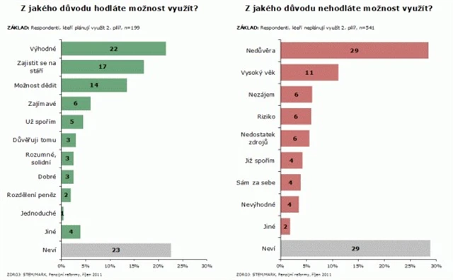 Především z důvodu nedůvěry, která je zpravidla způsobena nedostatkem informací, lidé do druhého pilíře převážně nepůjdou. Využít možnost opt-outu zvažuje jen 27 % respondentů.
