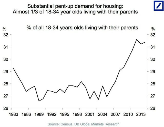 Americký realitní trh na tom není příliš dobře. Mladí lidé sice tvoří velkou část populace v USA, ale jejich ochota investovat do nemovitostí je malá a velká část z nich bydlí doma u rodičů. Vlastnictví nemovitosti v USA již zkrátka není tak v módě, jak tomu bylo na začátku milénia.