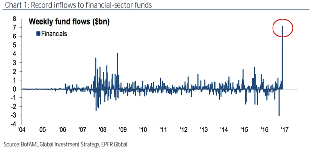 Velký zájem byl o fondy zaměřené na finanční sektor. Bankovní akcie těží z očekávání, že dále porostou výnosy dluhopisů, že budou klesat daně a že bude změkčena regulace odvětví.