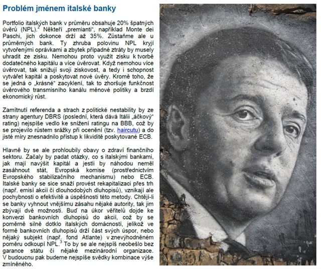 - Politická nestabilita může zpomalit italskou ekonomiku a prohloubit problémy italských bank.