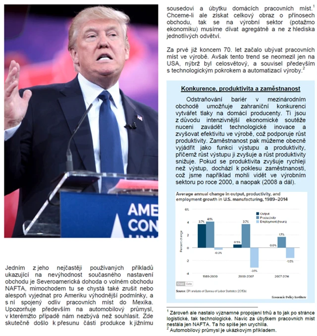 Ve světě Donalda Trumpa neslouží obchodní smlouvy ke vzájemnému prospěchu, naopak vytvářejí napětí a rivalitu. Příští americký prezident zejména poukazuje na negativní dopady na pracovní místa ve výrobním sektoru.