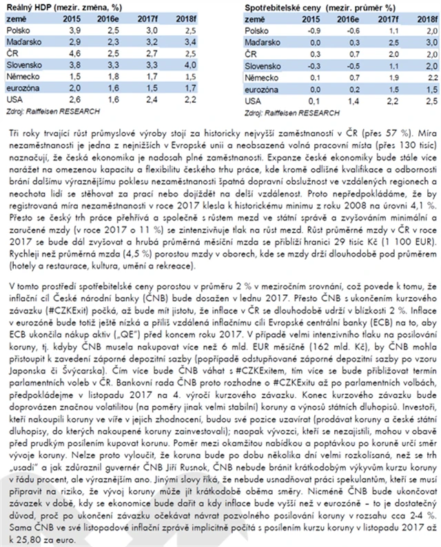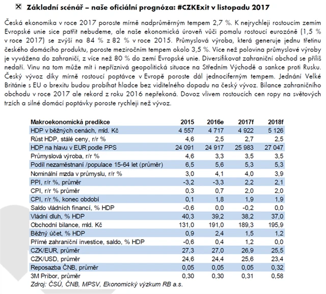 Autorkou scénářů (vydaných 20. prosince 2016) je hlavní ekonomka Raiffeisenbank Helena Horská.