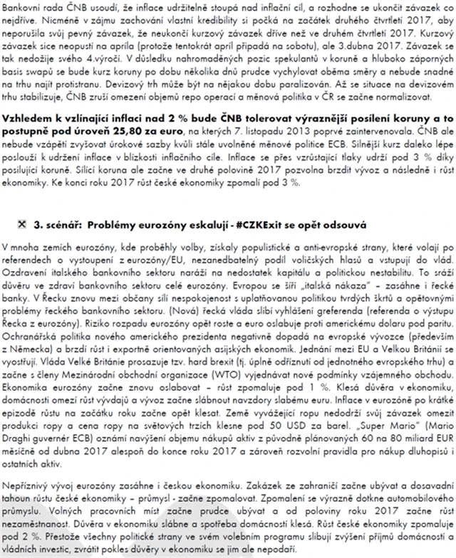 ČNB a česká ekonomika v roce 2017 aneb #CZKExit podle tří scénářů