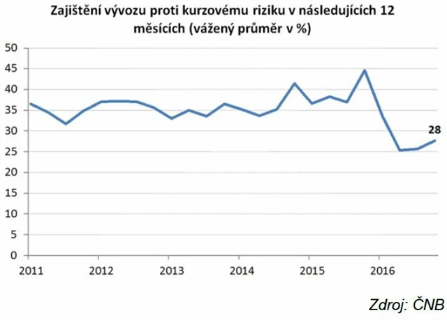 Jiná otázka je, co by se stalo, pokud by ČNB skutečně závazek ukončila dříve. ČNB totiž (poněkud nesprávně) říká, že podnikům nabízí zajištění zadarmo minimálně do konce prvního čtvrtletí. A firmy na to slyší a jsou podprůměrně zajištěné proti kurzovému riziku (na konci roku 2016 pouze 28 % exportujících společností). Porušení slibu by spustilo podobný "lynč" ze strany podniků, médií a politiků, jaký nastal v listopadu 2013 po zavedení kurzového závazku.