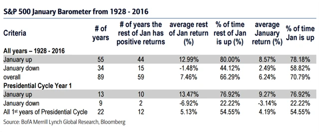 Velké naděje aktuálně investoři vkládají do nového amerického prezidenta. A je pravdou, že změna hlavy americké federace má historicky na dění na Wall Street mimořádný vliv. "Když akcie zakončí leden během prvního roku s novým prezidentem v plusu, pohybuje se šance na to, že v zelených číslech skončí i za celý rok, těsně pod 77 %. Průměrný celoroční zisk je pak asi 13,5 %," říká Stephen Suttmeier, analytik z Bank of America Merrill Lynch.