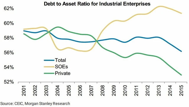 "**Podle našeho názoru tkví největší riziko v oblasti čínského dluhu ve špatné alokaci kapitálu, protože většina prostředků končí v neefektivních státem ovládaných firmách namísto toho, aby zamířila do soukromého sektoru," píše Eadon-Clark. Škodlivé účinky špatné alokace kapitálu se mohou projevit v delším horizontu, protože tento neproduktivní dluh může omezit ekonomický růst.