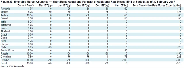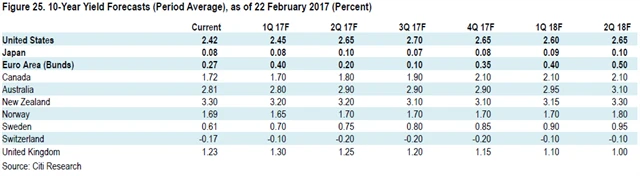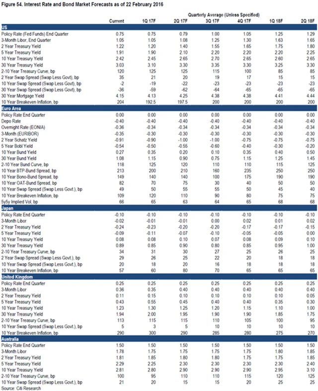 Jaký vývoj cen hlavních komodit, výnosů dluhopisů, sazeb centrálních bank a kurzů na měnovém trhu čekají analytici ze Citigroup? Nabízíme grafický přehled z jejich zprávy z konce února.