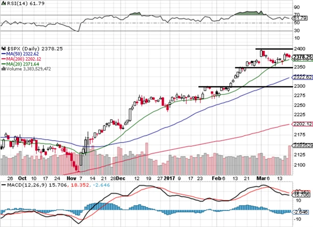 "Před středečním zveřejněním výsledku zasedání FOMC sice byly velice nízké objemy obchodů a čekalo se, zda americká centrální banka něčím nepřekvapí, ale nic překotného se nedělo. Ve středu díky možná ne až tak jestřábímu vyznění prohlášení Fedu a tiskové konference Janet Yellenové akcie opět nakoukly do blízkosti psychologické hladiny 2 400 bodů indexu S&P 500 a dolar oslabil vůči euru. Situace je již několik týdnů v podstatě beze změny. Graf indexu je v býčím nastavení, rezistence v zóně 2 400 platí a nejbližší supporty jsou na úrovních 2 350 a 2 300. Zatím situace hraje do karet býkům. Zvýšení úrokových sazeb nevedlo ke korekci a index již čtvrtý týden zůstává v úzkém rozpětí. Dokud neprolomí alespoň nejbližší support 2 350, výhled je býčí," napsal v pravidelném technickém komentáři pro Investiční web opční obchodník Josef Košťál "Index S&P 500 je uzavřený v úzkém rozpětí. Pokud prolomí support 2 350 při nadprůměrném objemu obchodů a dojde k růstu indexu volatility VIX nad 13, výhled se vyváží směrem k medvědům. VIX je zatím stále na minimu, takže opakuji otázku: Proč se nezajistit?"