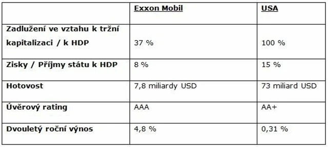 Podle finančních dat je Exxon atraktivnější investicí - s nižším zadlužením a vyšším výnosem i vyšším ratingem. Navíc zvyšuje dividendu již 26 let v řadě. Sečteno podtrženo, silné společnosti jako Exxon jsou důvěryhodnější než americké státní dluhopisy.