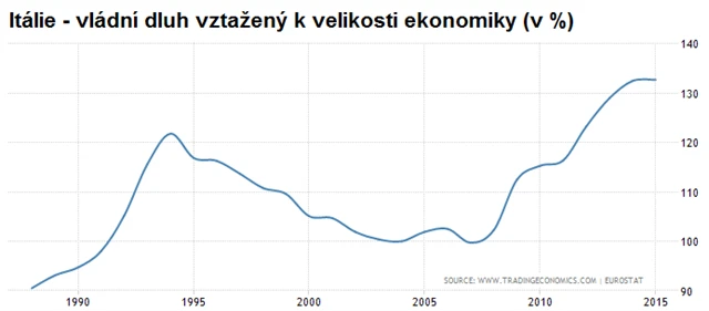 Určité indicie rizika odchodu Itálie z eurozóny by tu byly. Italská ekonomika se stále nedokázala probrat z krizových mrákot (HDP je 6 % pod úrovní z roku 2008), výrazné oslabení měny by jí ve snaze o posílení zahraniční poptávky mohlo pomoci. Veřejný dluh je již nyní astronomický (130 % HDP), takže je relativně vysoké riziko státního bankrotu, následného propadu ratingu italských státních dluhopisů, v důsledku toho neschopnosti italských bank čerpat od ECB likviditu, a tedy nutnosti zavést novou, vlastní měnu.