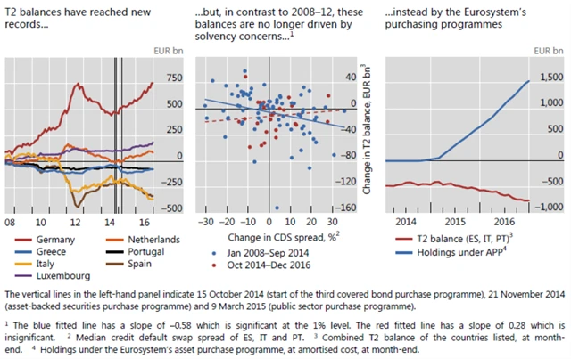 Tomuto pohledu ale na druhou stranu odporuje pozorování BIS týkající se konkrétně Řecka. Jeho státní dluhopisy jsou z QE vyloučeny, řecký dluh v TARGET2 se ale zároveň v posledních měsících nemění (investoři tedy z Řecka neutíkají).