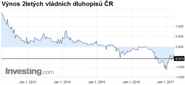 Ministerstvo financí na finančních trzích prodává od konce roku 2015 státní dluhopisy s kratší dobou splatnosti i se záporným výnosem. Například v půlce letošního ledna dosáhl stát v aukci jednoletého státního dluhopisu průměrného záporného výnosu 1,72 %. Od března ovšem podle ekonomů již výnosy těchto cenných papírů začaly pomalu růst.
